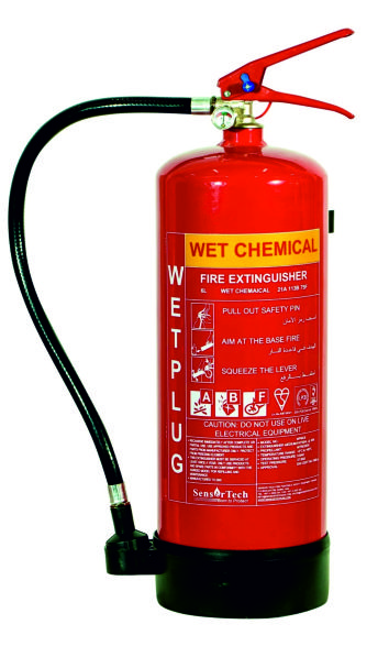 Stored Pressure, 2ltr, 4ltr, 6ltr and 9ltr fire extinguishers Wet chemical fire extinguishers will Class K fire risks and are designed for use against kitchen and fat fires. A unique feature of the wet chemical fire extinguishers is that the extinguishers can be operated from a distance of approximately 3-4 meters away reducing danger to the fire extinguisher operator ,